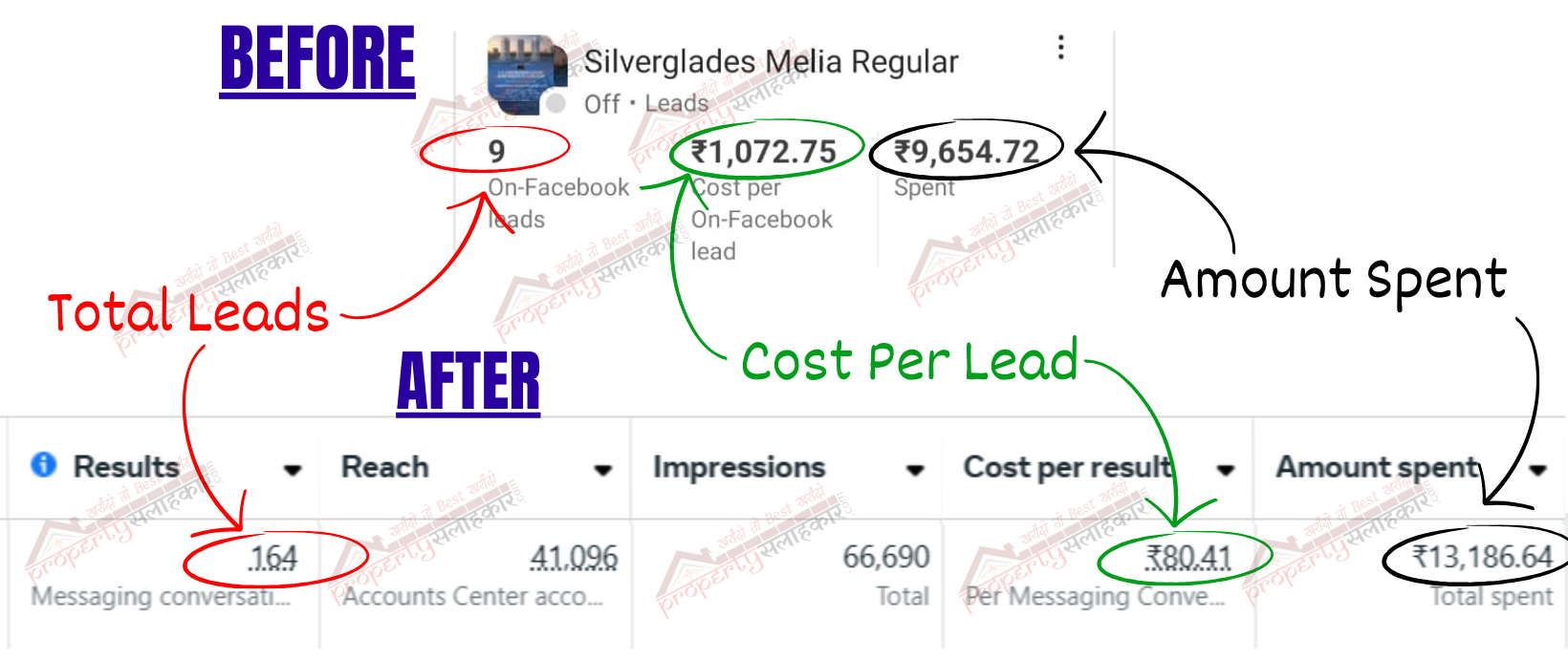Before Property Salahkar took over, the campaign was mismanaged, generating only 9 leads at an extremely high cost of ₹1,072.75 per lead, making conversions nearly impossible. When we stepped in, we completely restructured the campaign, optimized the audience targeting, and revamped the ad creatives. As a result, we brought the cost per lead down to just ₹80.41 and generated 164 high-intent leads, leading to the successful sale of 2 luxury flats. Our expertise in turning failing campaigns into profitable ones is why clients trust Property Salahkar for real estate marketing.