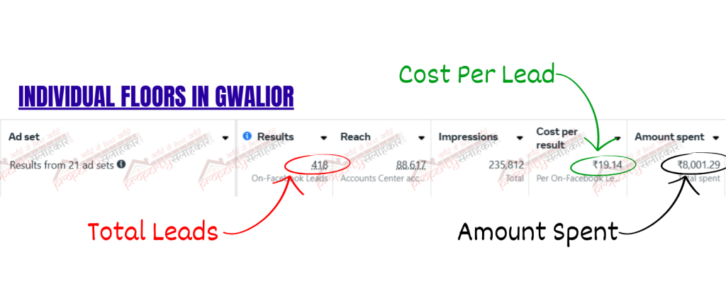 Property Salahkar successfully sold 80% of the inventory by running highly targeted Facebook ad campaigns that generated 418 quality leads at a cost of just ₹19.14 per lead. By leveraging precise audience segmentation and compelling ad creatives, we ensured that the leads were not just inquiries but genuine buyers. With a total spend of ₹8,001.29, we delivered outstanding results, proving that our expertise in digital marketing can drive real estate sales efficiently and cost-effectively.